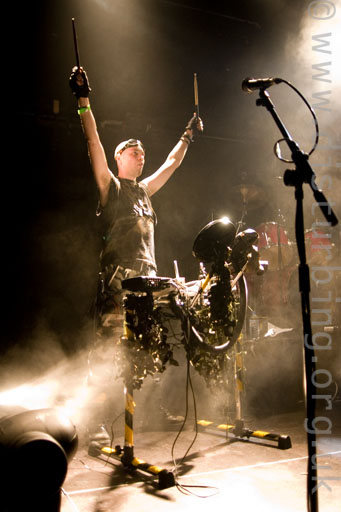 Sunday, on the train for Black Celebration for 9 bands and nearly 1200 photos. Most of them are absolutely rubbish due to new energy saving regulations which meant they didn't bother having any lights on for most of the bands. In brief... Modulate (really enjoyed); I Am Immune (jury still out but they were having fun); DeathBoy (not my bag, but Jason's strop was very watchable); V2A (hmmm); Knifeladder (liked, worth investigating - whale music for rivet heads); Chaos Engine (didn't do it for me); Psyche (aaargh, where's the exit - but better than Dark City); XPQ-21 (better at Whitby last weekend IMO) and Suicide Commando (better than when I saw them at Infest and actually quite pleasant). Then a run for the train and back ~2am.